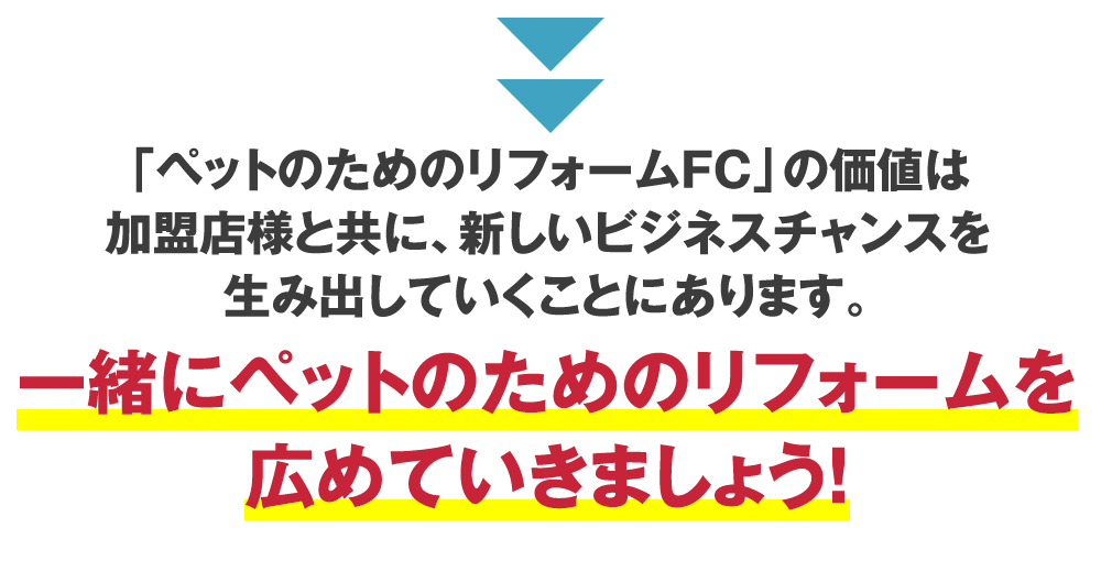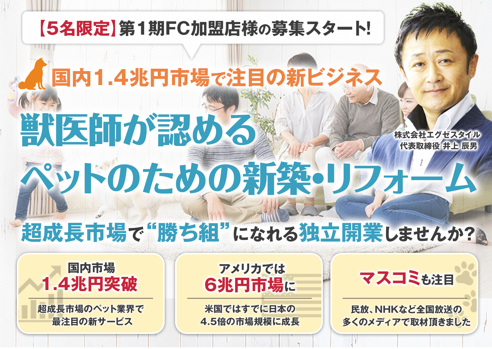 この度は当社の新事業「ペットのためのリフォームビジネス」のフランチャイズ加盟店募集にご興味を持っていただき誠にありがとうございます。
