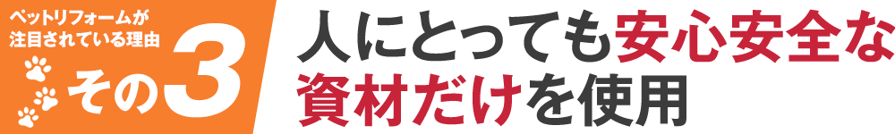 人体に有害な建築資材を使用した住宅の健康被害も少なくありません。当社のペットのためのリフォームは、人にとっても健康な住宅です。ペットにも人にも無害な資材のみを使用しています。